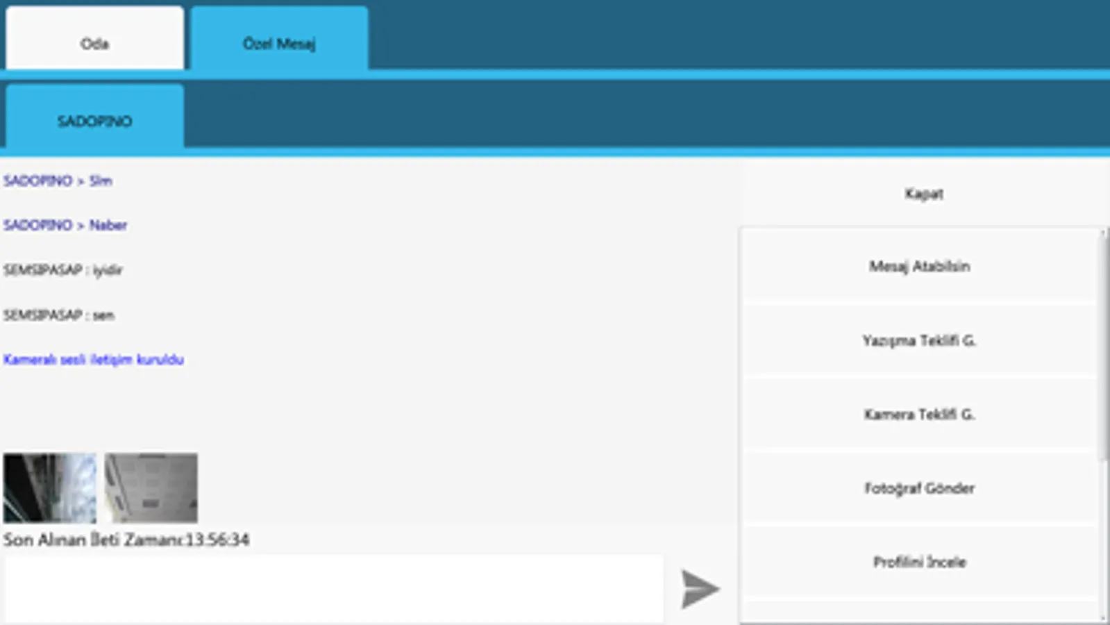 Tanıştığınız kişilerle özel mesaj bölümünden kameralı ve yazılı görüşme yapabilirsiniz.