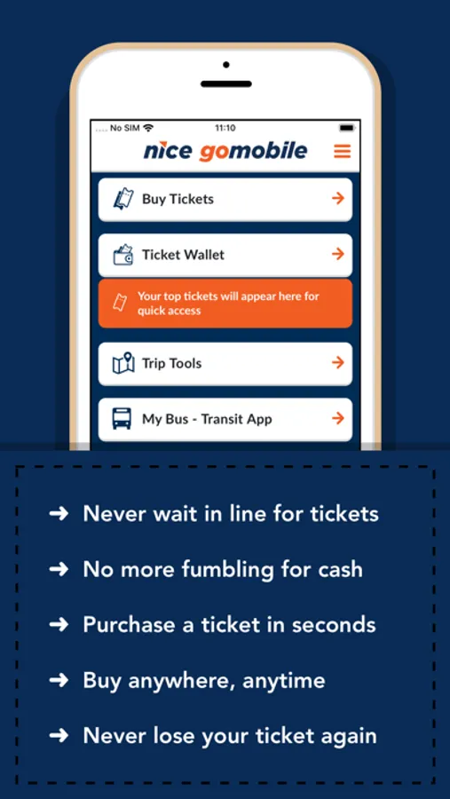 With NICE gomobile, you can buy bus tickets anytime and anywhere. The Official NICE gomobile app is like having a vending machine in your pocket. No need to carry a MetroCard or fumble for change, gomobile will revolutionize your NICE bus experience!