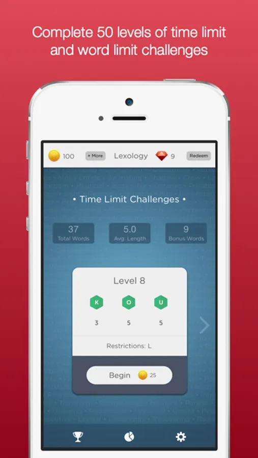 Once you have used a word, you may not use that word ever again on any level. There are over 75,000 words in the Lexology dictionary. We have randomly selected 10,000 words as part of a bonus game. If you type one of these words, you will receive a bonus gem.
