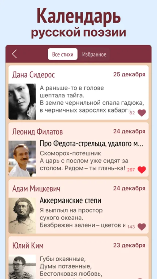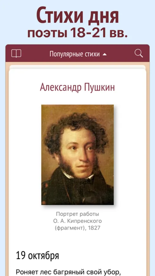 • Offline access to all poems — read the anthology at any convenient time. The Internet is only needed for downloading new poems.