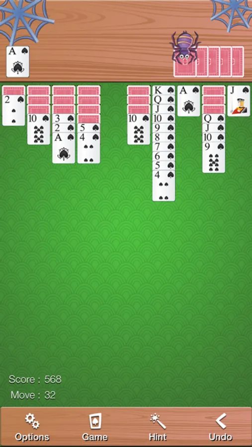 It is one of the most popular solitaire game. The main purpose of the game is to remove all cards from the table, assembling them in the tableau before removing them. Initially, 54 cards are dealt to the tableau in ten piles, face down except for the top cards. The tableau piles build down by rank, and in-suit sequences can be moved together. The 50 remaining cards can be dealt to the tableau ten at a time.