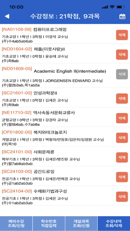 ■ 웹 수강신청과 중복 사용이 불가능 합니다.