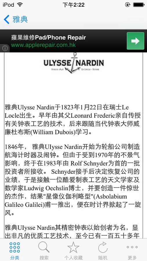 最全最专业的手表知识大全,一次下载,所有信息离线使用。所有IOS设备通用,支持一键收藏,摇一摇随机查看,全文搜索。