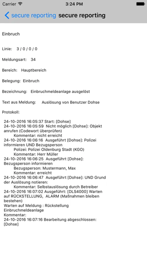 ACHTUNG, secure reporting ist nur verwendbar im Zusammenhang mit einer kostenpflichtigen Anbindung einer Gefahrenmeldeanlage über die FSO Fernwirk-Sicherheitssysteme Oldenburg GmbH.
