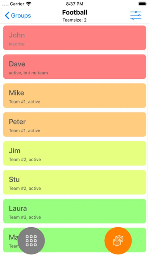 * Choose between a fixed teamsize or a fixed number of teams to create your teams.