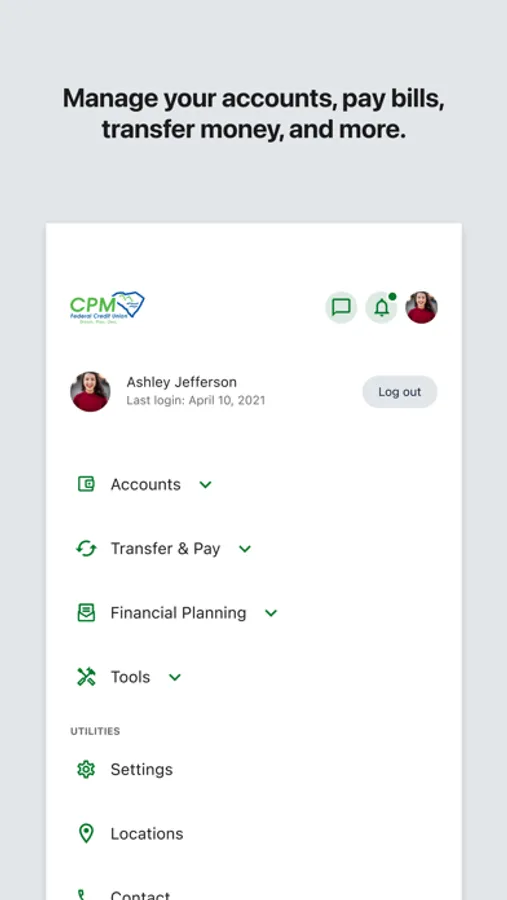 Sign in to your account to access the same features and convenience available thru CPM Anytime Online Banking! View your account balance, make transfers or loan payments, make deposits, pay bills, find locations and control your debit or credit cards, all with ease.