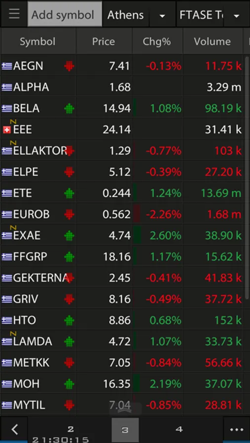 • Alerts based on the price and/or volume and/or change of a symbol.