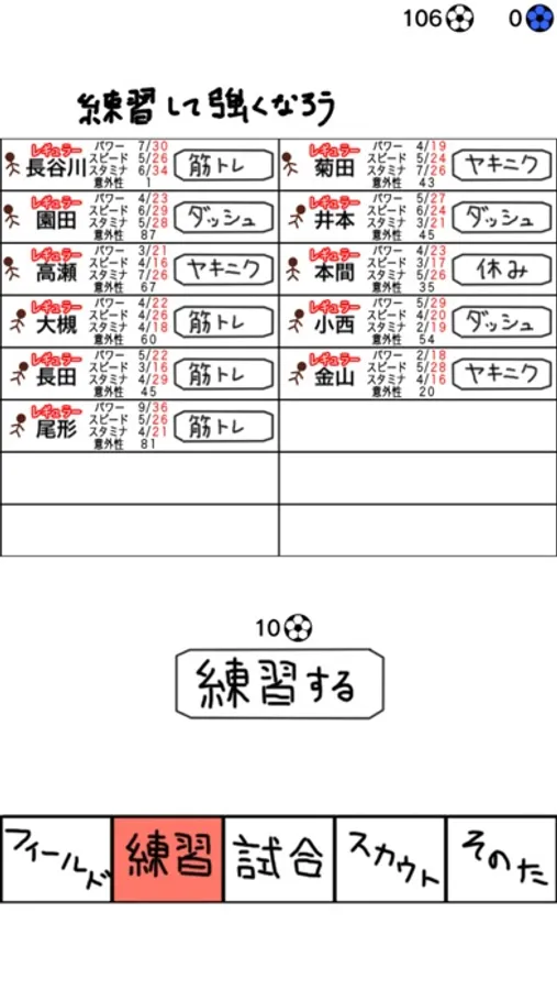 UFOとかの力でスカウトして11人集め、サッカーをしましょう。