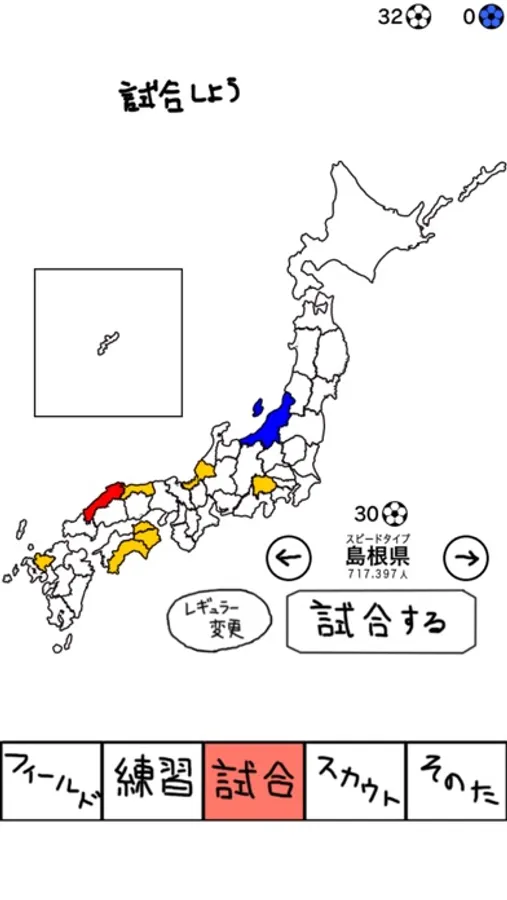都道府県ごとにタイプが決まっているので、それを気をつけつつ試合しよう。