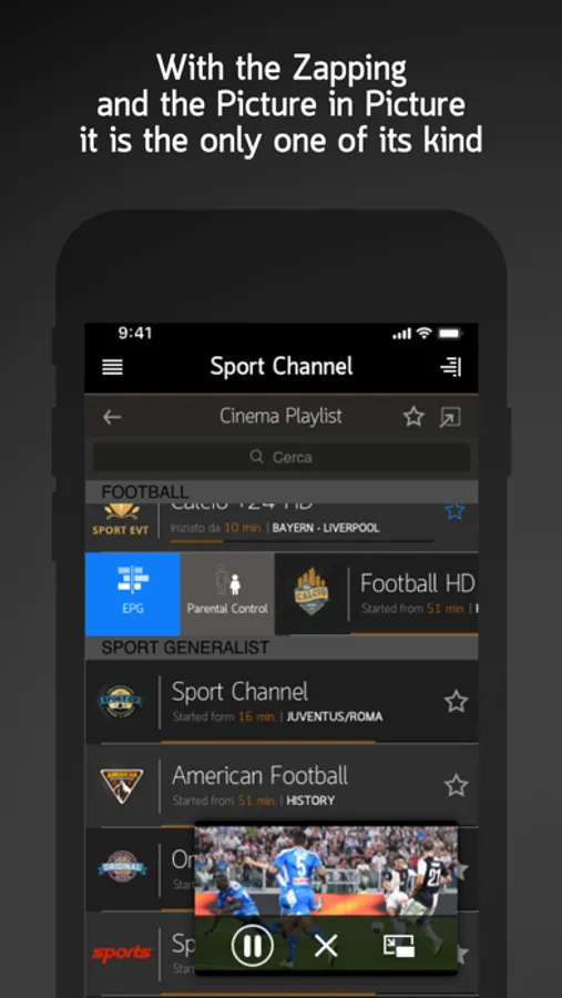 • Activate zapping and PIP € 1.09 - a mini player will help in the preview of your channels with PIP feature