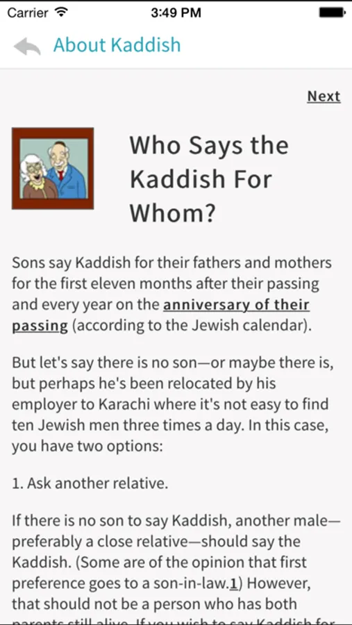 Kaddish Assistant helps you learn how to say Kaddish at your own pace and in your own tradition. Read along as each word of the Kaddish is recited and highlighted. Learn how to properly pronounce each word, using either Hebrew or transliteration. And understand what each word means with integrated translations.