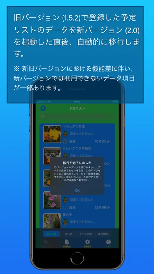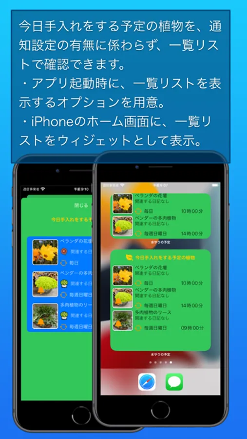 ・今日手入れをする予定の植物をウィジェットで一覧表示します。