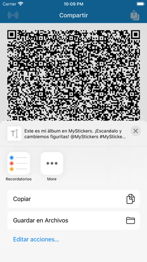 - Comparte tu álbum con otros coleccionistas mostrando tu código QR