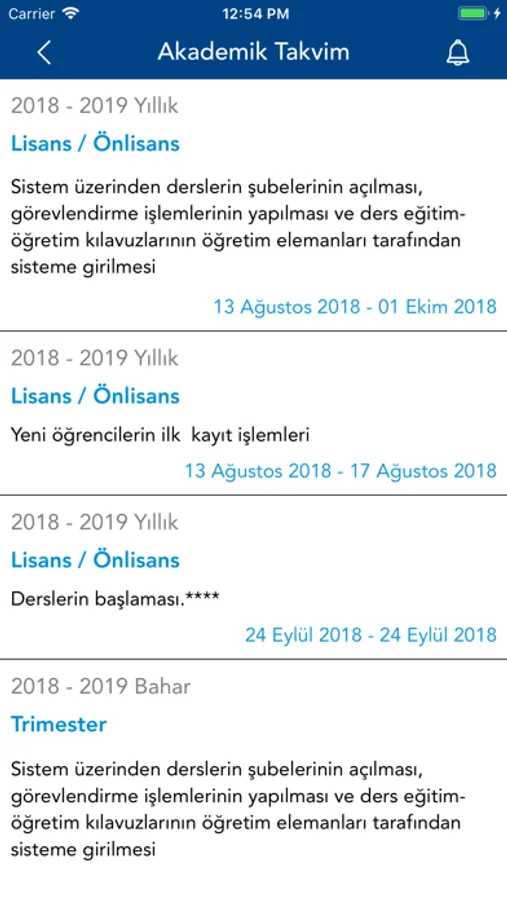 Öğrenciler için: Öğrencilik bilgisi, dönemde alınan dersler, ders kataloğu, ders programı, ders duyuruları, sınav programı, programa ait tüm ders bilgileri