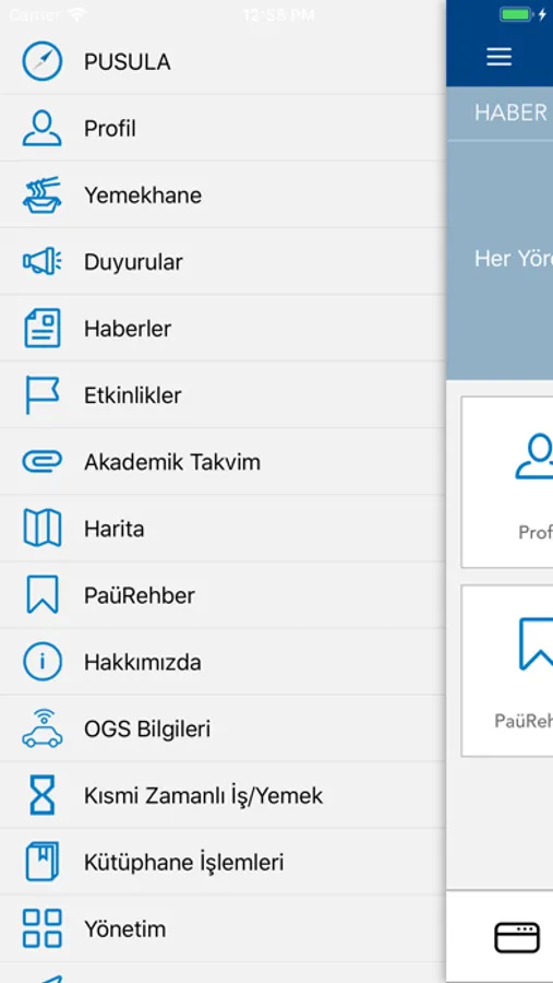 PAÜ Mobil uygulaması ile şu içeriklere ulaşılabilir.