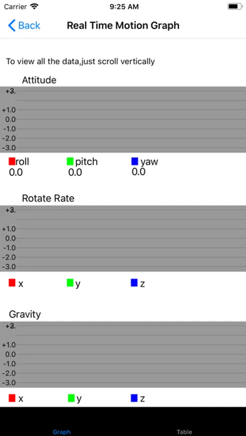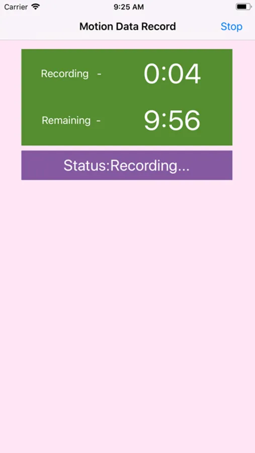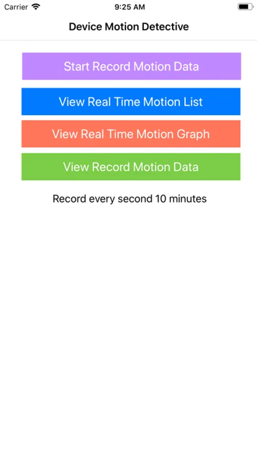 The current version could record the device motion data for 10 minutes when tap the record button once. After 10 minutes, the user could tap the record button again. During recording, the app will insert the motion data to the database every second.