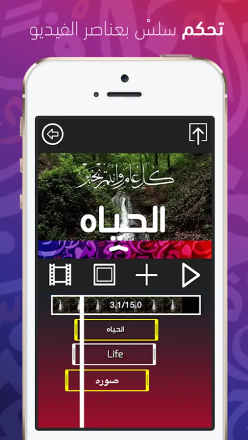 - منطقة للتحكم الكامل بالعناصر المضافه للفيديو