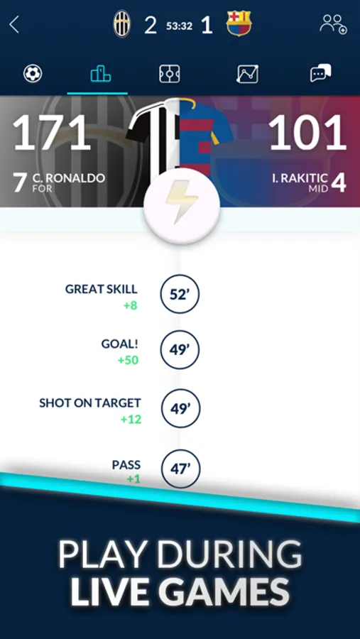 4. Use power-ups and trades during the live match to boost your players
