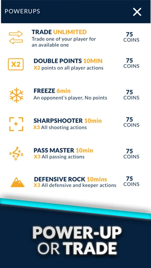 • Use power-ups to boost your players or trade them out