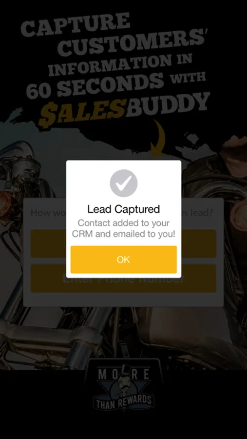 Not a More Than Rewards customer? You can still use Sales-Buddy for FREE! It also works with H-D CONNECT, DealerCRM, V-SEPT, Traffic Log Pro (TLP), or any other CRM with an email lead-forwarding or “drop box” feature.