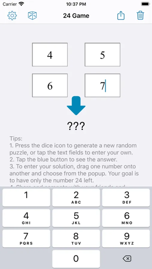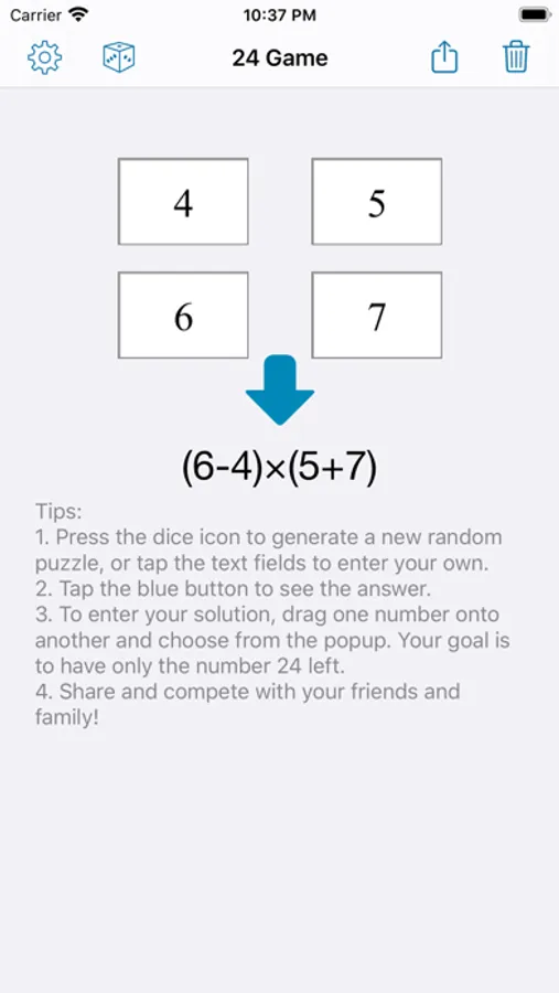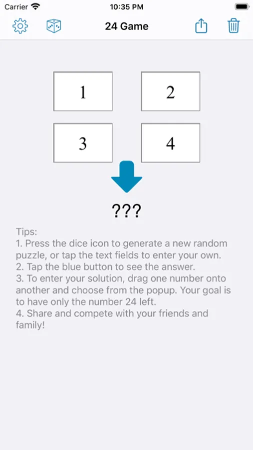 Ever wondered whether there is a solution to a set of four numbers? This app notifies you if there's no result.