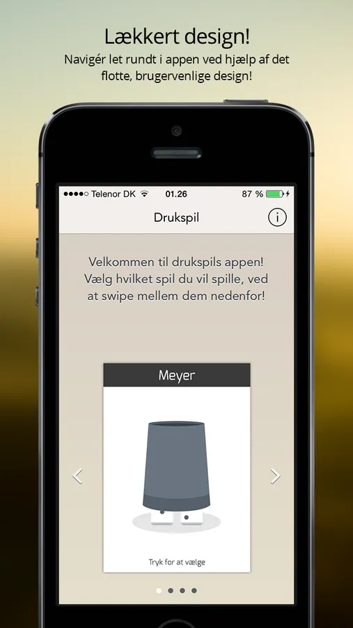 - Over eller Under med både swipe-gestures til at styre, samt en "send videre" funktion!