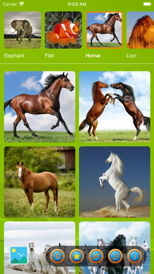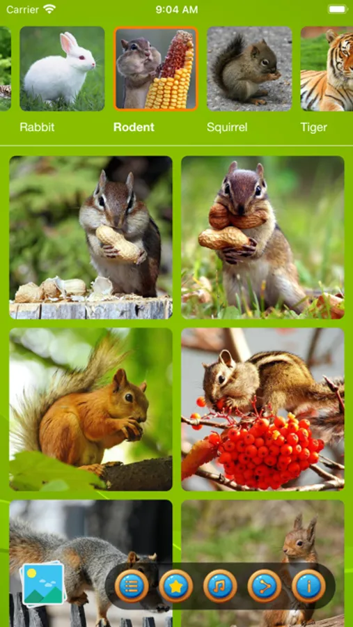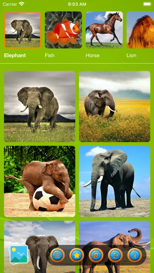 Although you can play slide puzzles with various lovely images of wild animals: ELEPHANT, LION, TIGER, HORSE, ZEBRA, RABBIT, SQUIRREL, RODENT, FISH … They all are cute.