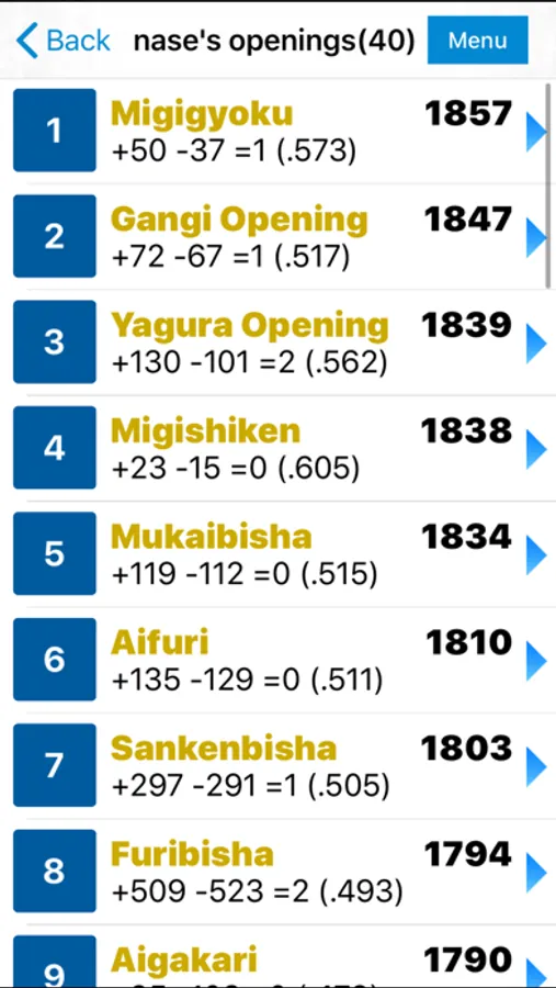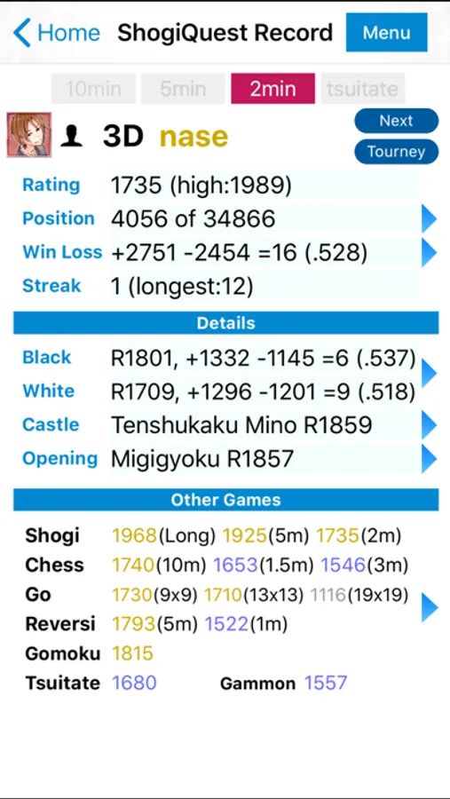2. Detailed records. Ratings, wins/losses are stored separately for Black/White, different openings and castles, so you can easily grasp your weaknesses.