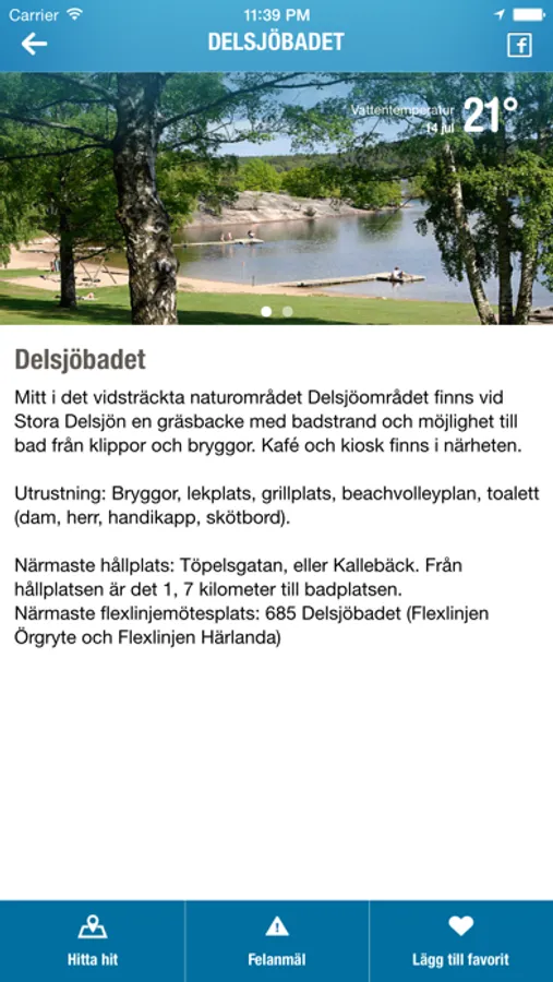 Appen Badplatsen är framtagen av Göteborgs Stad. Med appen hittar du till Göteborgs kommunala badplatser och simhallar. Är du osäker på om det är dags för ett dopp i havet talar appen om hur varmt det är i vattnet (juni-augusti). Hitta närmaste badplats eller simhall via karta, spara dina favoriter och ta dig enkelt dit med hjälp av lokaltrafiken. I appen finns något för alla badsugna!