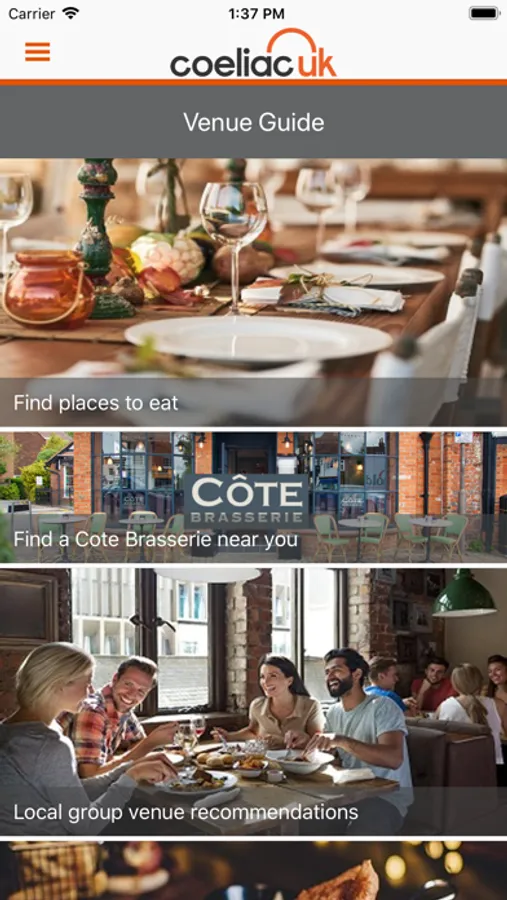 We’ve made eating out gluten free easier for you. Our app helps you find suitable venues while out and about. Whether it’s to grab food on the go or find a suitable venue for a special occasion you can check through thousands of venues that also come with reviews and ratings from our community. Over half of the venues have our GF accreditation so you can be reassured meals are safely prepared and the venues meet all the aspects of our gluten free standard.