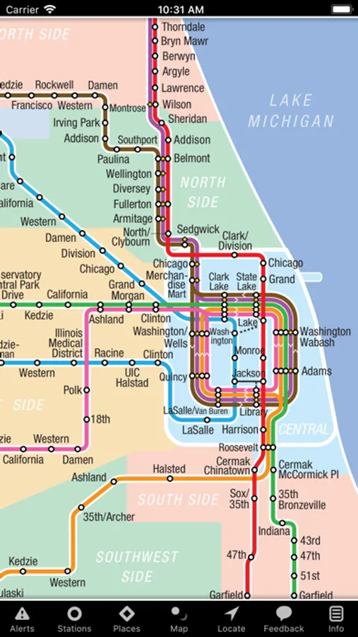 • Cross-referenced lists that show every station and Chicago's legendary neighborhoods right on the map.