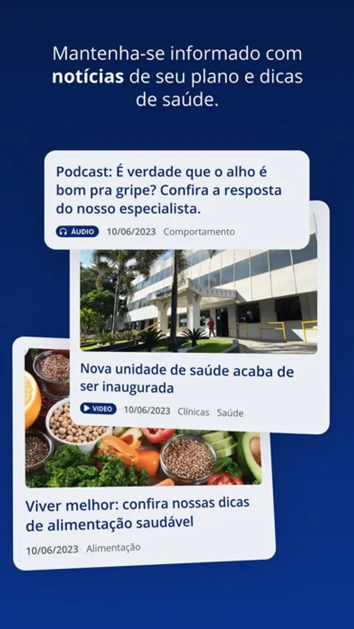 Descubra nosso novo aplicativo de planos de saúde! Encontre médicos e hospitais próximos, tenha um cartão virtual, acesse contatos úteis e muito mais. Simplifique sua experiência de cuidados de saúde com nosso aplicativo!