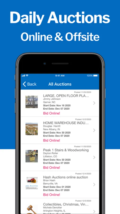 Auctions for fine art, cars, antiques, collectables, houses for sale and more are available with Auctioneer, the online auction app that connects you to both live and online auctions nationwide! Never miss a chance to pick up your favorite items again!