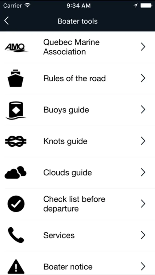 - Access tools specially designed for leisure boaters such as the buoys guide or the knots guide.