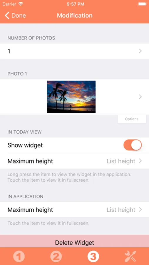 Each Photo widget allows to view one or more photos from the photo library of your device.