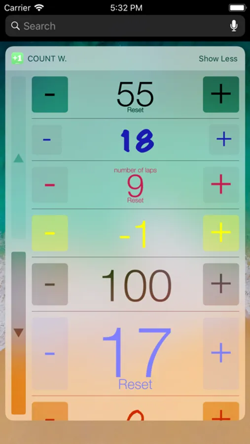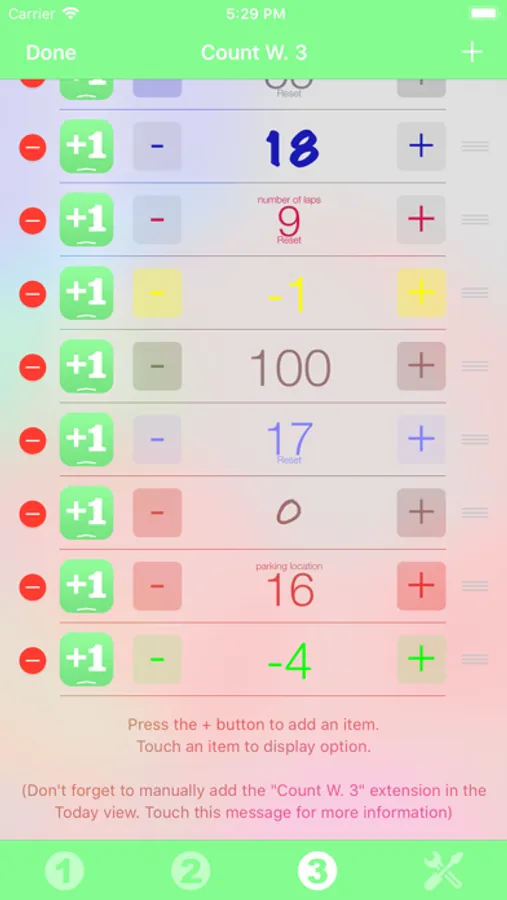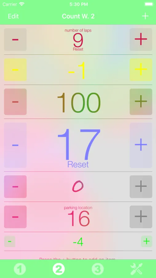 The values of your counters can be incremented, decremented and also reset by touching the dedicated buttons.