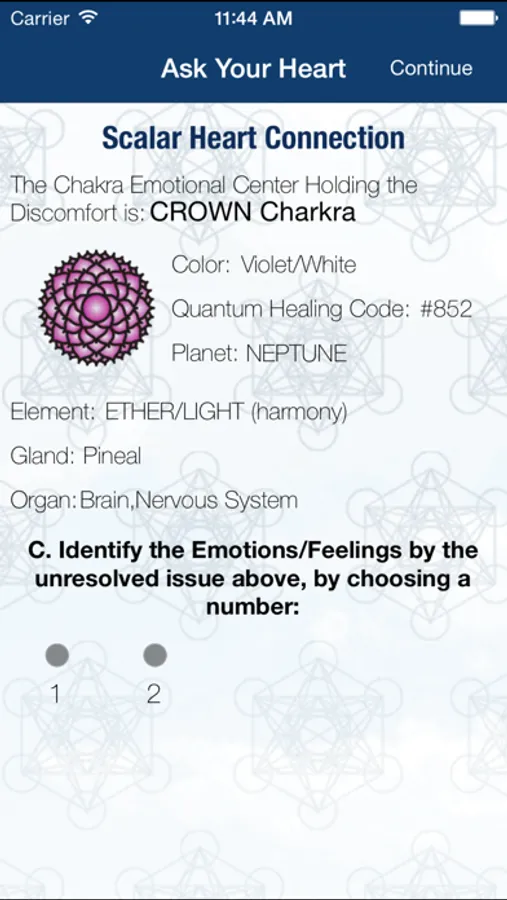 Quantum Healing Codes™ are based on the idea that there exists a predictable geometric pattern behind all matter. From this pattern all else can be created. These codes support greater coherence within the resonance of what we want to create in our life. The code you choose in the app is specific to the frequency you need to hear in order to shift the resonance from one of mind-brain reaction to one of heart-centered compassion.