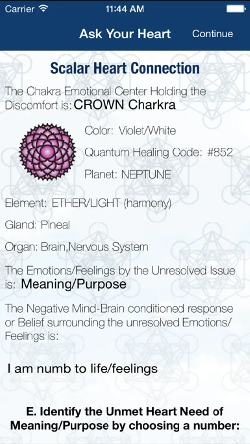 Next, the program will tell you the way to overcoming the negative emotion by showing you the Unmet Heart Need and the Positive Heart Response.