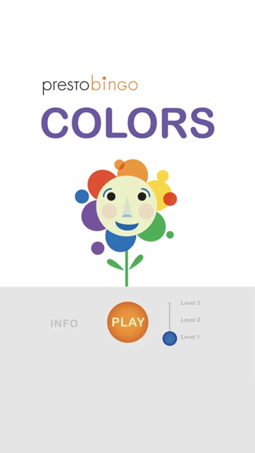 Learn COLORS! Kids navigate through robot factories and butterfly fields as they master the intricacies of color identification. The easiest setting covers basic colors for preschoolers: black, blue, brown, gray, green, orange, pink, purple, red, white, and yellow. On each screen, kids are asked to find objects of a specified color. Friendly narration guides them if they get stuck. Sometimes kids will need to tilt their device to find a hidden shape that's just off the screen. Then, when the basics are mastered, the difficulty level can be changed. Magenta? Periwinkle? Plum? With over 80 colors to learn, PrestoBingo Colors is a challenge for older kids and grown-ups too!