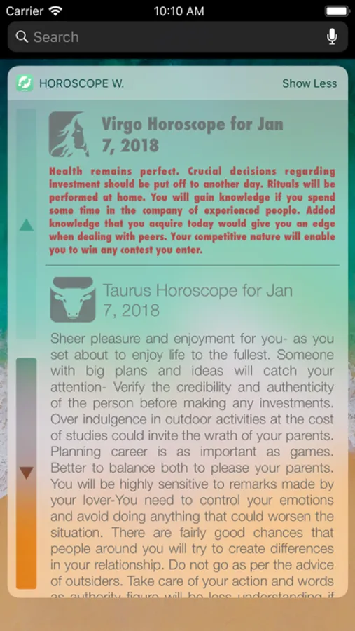 Touching the horoscope will allow you to view the source web page, which usually contains some additional information.