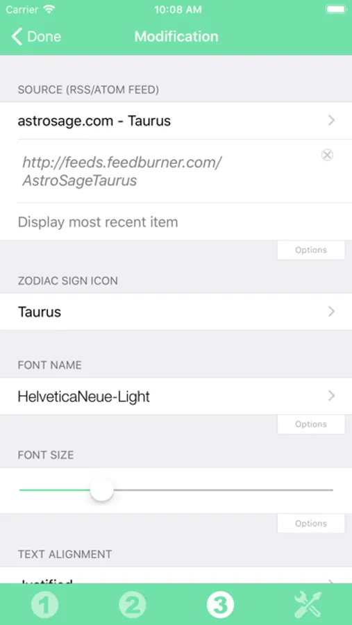 The widget connects to some english dedicated web sites, providing daily RSS feed about the 12 zodiac signs.