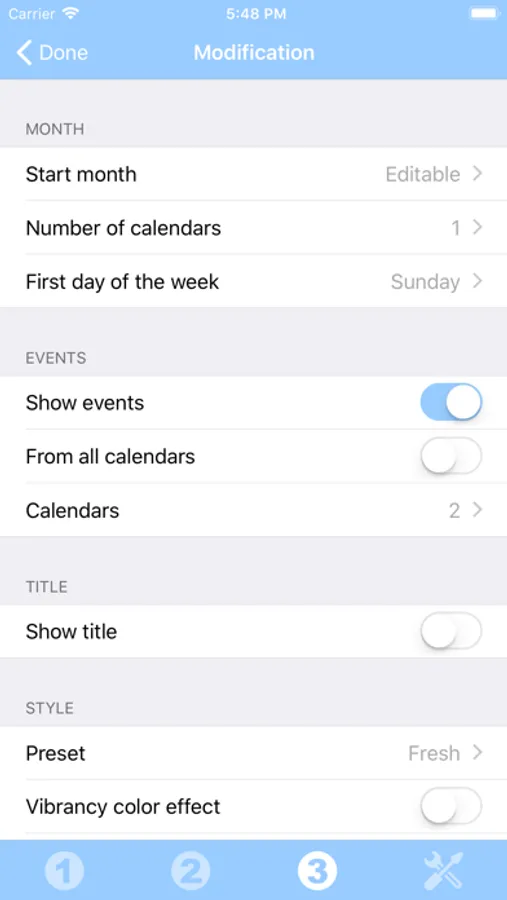 You can add as many widgets as you want and they will be displayed in up to 3 different lists. Those same lists will be available in the Today view and in the application (although it is possible, if you want, to hide some widgets in the Today view).