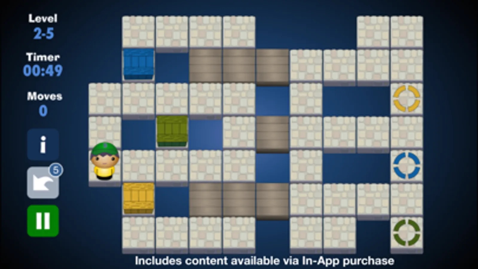 PushBoy comes with 72 levels in 4 worlds that will entertain you for many days. Levels get gradually more difficult while special tiles add an extra twist. The first 6 levels of each world (24 in total) are free to play. Levels 7-18 are available as in-app purchase.