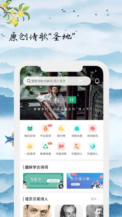 4, 欣赏"诺贝尔获奖诗人"的佳作,我们从所有获得诺贝尔文学奖的作家中精心挑选了所有的获奖诗人和他们的代表作,一并呈现给广大用户,只是为了让我们和世界殿堂级诗人们零距离,让那些经典的诗句照拂进我们略显平庸的生活,带我们展翅高飞。