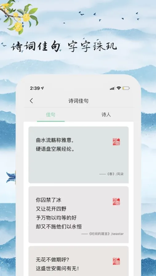 中国是一个诗的国度,每一个中国人都会背诵几句《诗经》里的经典语句;到唐代中国诗发展到一个顶峰,李白、杜甫、白居易、王维、孟浩然等一批卓越诗人的精典诗句历经千年至今仍被我们熟记;到宋代随着词的兴盛,又涌现了像苏东坡、李清照、辛弃疾等一代文学巨匠,他们共同辉耀了中国古代文学的星空。