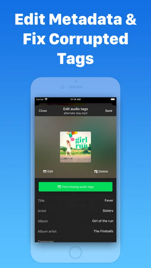 ID3 tags editor. If you have corrupted metadata in your files you can edit audio tags using ID3 tags editor.