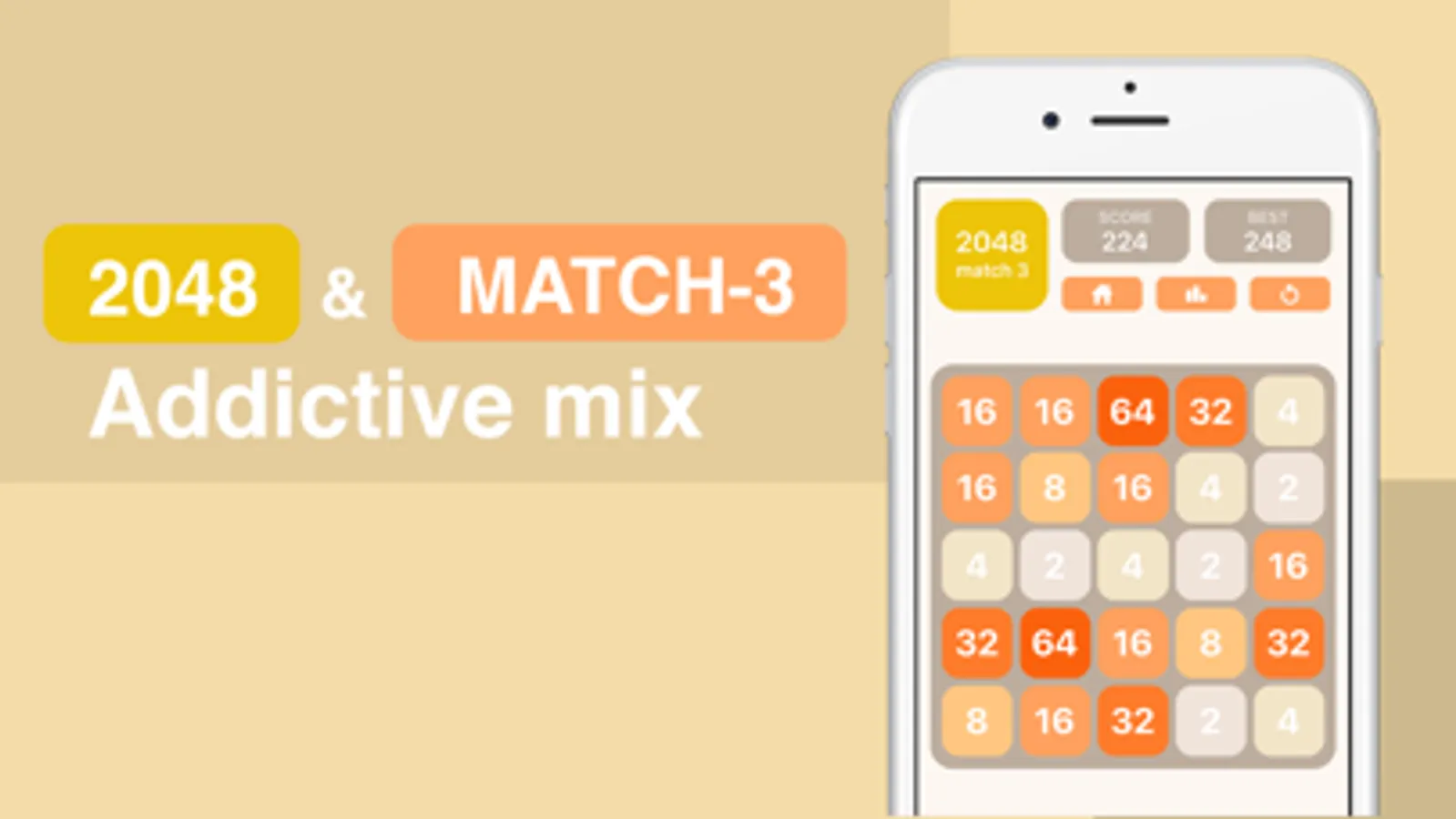 Addictive mix of "2048" and "match 3"!