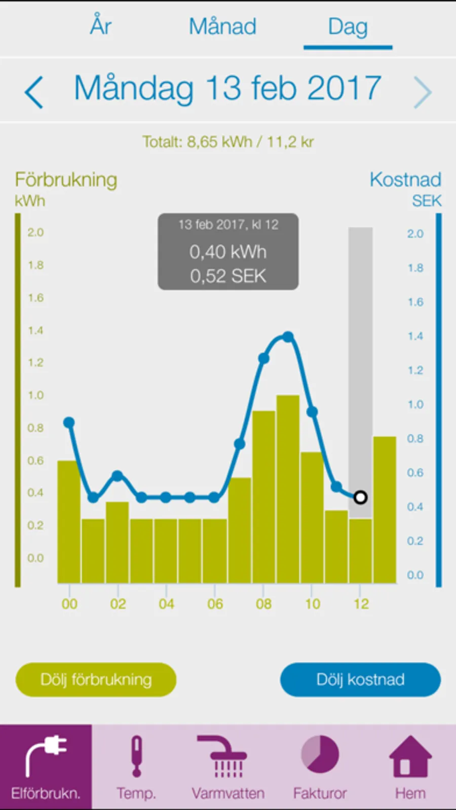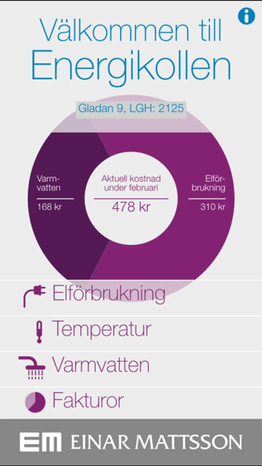 Med Energikollen kan du som bor i en Einar Mattsson-fastighet enkelt ha full koll på din bostads energiförbrukning. Via appen kan du se din temperatur, el- och vattenförbrukning, både i realtid och statistiskt över tid, samt din kommande faktura. Med hjälp av Energikollen kan du hålla koll på din energiförbrukning och på så sätt påverka både miljön och din ekonomi!