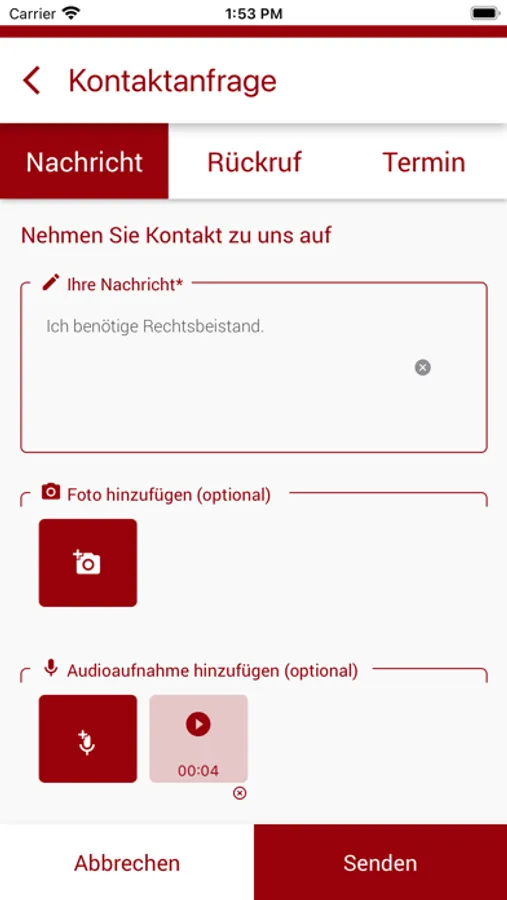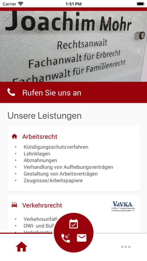 Mit Hilfe unserer APP bieten wir ihnen direkte, schnelle, unbürokratische und individuelle Hilfe, wann immer und wo immer sie diese benötigen. Von der Übermittlung wichtiger Dokumente bis hin zur fotografischen Unfallaufnahme, ein Klick und mein Team setzt sich mit Kompetenz und Engagement für ihr Recht ein.