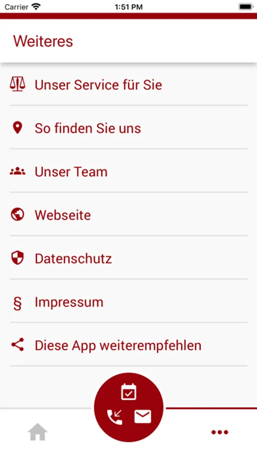 - Anzeige unserer Webseite in der App mit allen weiteren Informationen